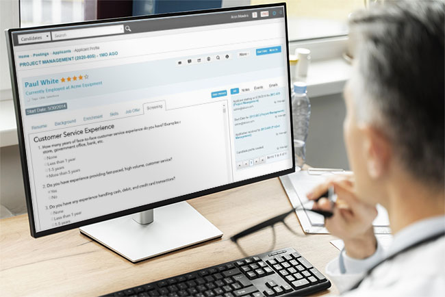 You get the ability to post jobs to your organization’s careers site as well as social media channels and allow applicants to self-register and apply for jobs. Applicants can submit resumes, apply for multiple jobs, review screening questions and respond to scheduled interviews.
